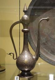 Keywords: Ewer with a handle and lid, Iran, 18th century, engraved steel, inlaid with gold wire - Royal Ontario Museum - DSC04747.JPG en Exhibit in the Royal Ontario Museum Toronto Ontario Canada This work is old enough so that it is in the public domain Photography was permitted in the museum without restriction 2013-10-08 17 17 20 own Daderot cc-zero Uploaded with UploadWizard Metalwork of Iran in the Royal Ontario Museum |