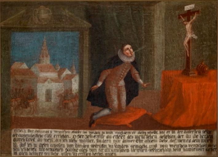 Keywords: Ex voto- Cesar Ferdinand II. pri molitvi (1619).jpg unknown 1619 oil canvas cm 52 73 Institution National Museum of Slovenia http //www nms si/index php option com_content view category layout blog id 81 Itemid 27 lang en Zbirka slik Narodnega muzeja Slovenije PD-old-100 1619 paintings in Slovenia Paintings by unknown painters in Slovenia 17th-century paintings in the National Museum of Slovenia 17th-century oil on canvas paintings in Slovenia 17th-century religious paintings in Slovenia Ex-voto paintings in Slovenia Ferdinand II Holy Roman Emperor |