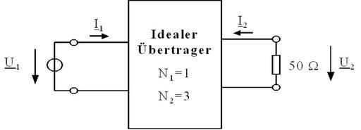 Keywords: Example1 Transformer.png Example of voltage transformation current transformation and resistance transformation 2007-02-18 own assumed Michael Lenz Transformer circuits