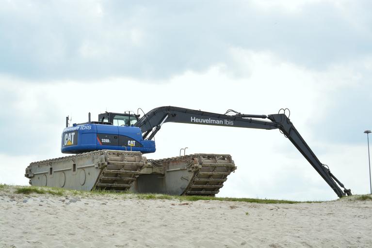Keywords: excavators beach construction machine blue shovel metal machines tracked vehicle