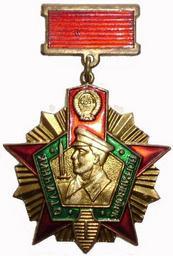 | Keywords: Excellent KGB Border Troop 1st class CCCP.jpg en Breast badge for Excellent Border Troop 1st class Award of the KGB of the USSR Instituted on 8 April 1969 by KGB order number 53 Awarded to soldiers sailors sergeants and petty officers of KGB Border Troops or to other soldiers urgently enlisted in assisting the Border Troops for exemplary performance of duties in the protection of the state border of the USSR skillful actions to apprehend violators of the border for displaying courage perseverance endurance excellent performance in combat and political training and for military discipline fr Insigne de poitrine pour Excellent Garde Frontaliers de 1ère classe Décoration du KGB de l'URSS Institué le 8 avril 1969 par l'ordre du KGB numéro 53 Décerné aux soldats matelots sergents et premier-maîtres des gardes frontièrs du KGB ou à d'autres soldats enrôlés d'urgence pour assister les gardes-frontièrs pour performances exemplaires des devoirs dans la protection de la frontière d'état de l'URSS pour des actions habiles à appréhender les contrevenants à la frontière pour le courage la persévérance l'endurance pour d'excellentes performances durant l'entraînement politique et de combat pour discipline militaire ru аг удные знак «Отличник пог анвойск» I степени П иказом 53 КГБ п и С СССР 8 ап еля 1969 г аг аждаются солдаты мат осы се жанты и ста шины пог аничных войск с очной и све хс очной службы за об азцовое несение службы по ох ане госуда ственной г аницы Союза ССР умелые действия по заде жанию на ушителей г аницы и пог аничного ежима п оявленные п и этом смелость настойчивость выде жку отличные показатели в боевой политической подготовке и п име ность в воинской дисциплине own Fdutil Military decorations of the Soviet Union Symbols of the KGB |
