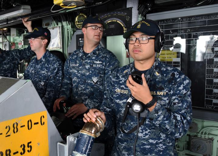 Keywords: Exercise Foal Eagle 150405-N-AD372-211.jpg en 150405-N-AD372-211 WATERS SOUTH OF THE KOREAN PENINSULA April 5 2015 Logistics Specialist 2nd Class Nicholas White and Mineman 3rd Class Jeromy Henderson operate the ships control console while Ens Allen Sinfuego mans the sound powered phone aboard the mine countermeasure ship USS Chief MCM 14 during the ships sea and anchor detail Chief is currently participating in Exercise Foal Eagle 2015 a series of annual training events that are defense-oriented and designed to increase readiness and maintain stability on the Korean Peninsula while strengthening the Republic of Korea - U S alliance and promoting regional peace and stability in the Indo-Asia-Pacific region U S Navy photo by Mass Communication Specialist 1st Class Abraham Essenmacher/Released 2015-04-05 Petty Officer 2nd Class Abraham Essenmacher https //www dvidshub net/image/1863538 150405-N-AD372-211 2015-04-09 00 00 USS CHIEF WATERS SOUTH OF THE REPUBLIC OF KOREA AT SEA PD-USGov-Military-Navy USS Chief MCM-14 Images from DoD uploaded by Fæ Foal Eagle 2015 Navy Working Uniform in 2015 |