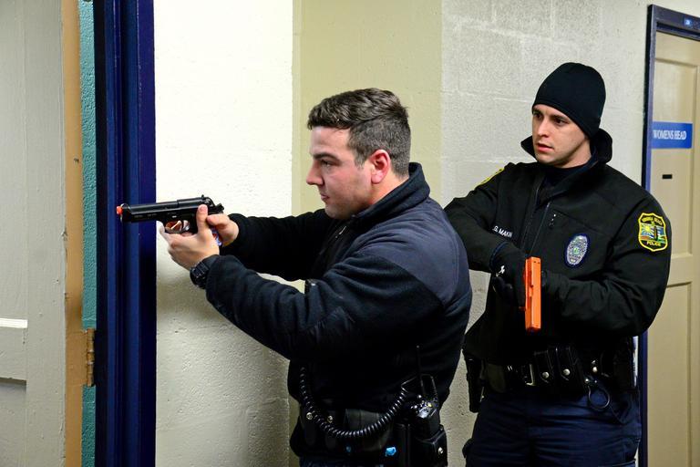 Keywords: Exercise Solid Curtain-Citadel Shield 2015 150203-N-IS680-361.jpg en Master-at-Arms Seaman Michael Angelo and Officer Joshua Makin from the Virginia Beach Police Department cover a doorway during an active shooter drill at Naval Air Station Oceana as part of Exercise Solid Curtain-Citadel Shield 2015 SC-CS15 SC-CS15 is the Navy ™s largest annual force protection exercise designed to test the service ™s security forces to respond to threats to installations and units U S Navy photo by Mass Communication Specialist 2nd Class Alysia R Hernandez/RELEASED 2015-02-03 Petty Officer 2nd Class Alysia Hernandez https //www dvidshub net/image/1752261 150203-N-IS680-361 2015-02-04 20 37 NAVAL AIR STATION OCEANA VA US PD-USGov-Military-Navy People at Naval Air Station Oceana Images from DoD uploaded by Fæ |