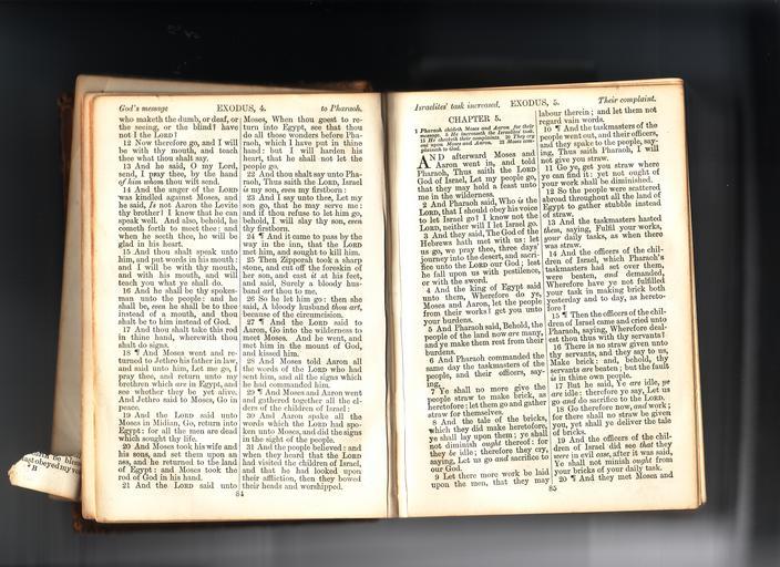 | Keywords: Exodus 4 - reference to spiritual possession putting words in mouths.jpg en In the King James Version there is Refrence to God Moving the lips of Moses a spiritual possession and putting words in his mouth so that he may be an avatar a tele-presence for imparting Gods message to the people Exodus 4 Verse 15 And thou shalt speak unto him and put words in his mouth and I will be with thy mouth and with his mouth and will teach you what to do Own Accuruss scanned from a King James Bible printed in the 1800's God's work Book of Exodus King James Bible Lips God Bibles |