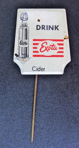 Keywords: Exota Cider limonade speldje.JPG nl Reclame speldje van een oud Nederlands product of merk en Advertising pin of an old Dutch product or brand own 2016-12-18 22 20 59 Alf van Beem Trademarked Advertising pins