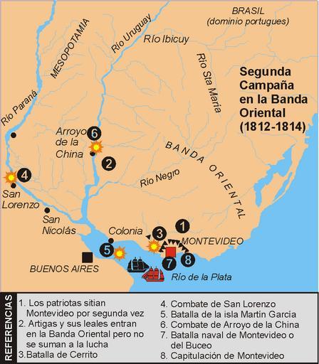 | Keywords: Expedición BO 1811-14.png Operaciones militares en la Banda Oriental y región litoraleña 1812-14 - Military actions in eastern scenario actually Uruguay and Argentina Own 2008-05 Rafunken Expedición BO 1811-14 en png Maps of Argentine war of Independence Maps of the history of Uruguay Sieges of Montevideo Military maps of Uruguay |