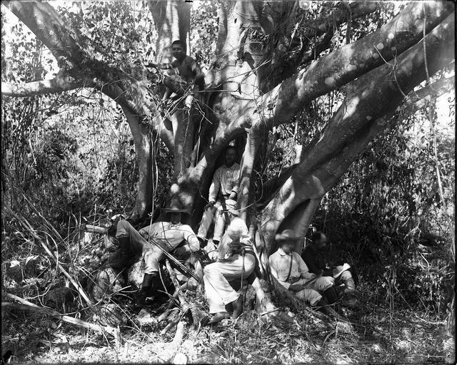 Keywords: botany expedition botanyexpedition 1898 1899 charles millspaugh charlesmillspaugh edward allen edwardallen edward isham jr. edwardishamjr jordan mott jr. jordanmottjr bermuda bahamas haiti jamaica puerto rico cuba yucatan central america centralamerica west indies westindies plant collecting plantcollecting blackandwhite monochrome outdoor tree plant black and white Expedition members, unidentified by name, with guns, rifles, seated in and around a large tree, Ficus rubiginosa. 1899. Name of Expedition: Allison V. Armour Expedition Participants: Charles F. Millspaugh, Edward P. Allen, Edward S. Isham Jr.,Jordan L. Mott Jr. Expedition Start Date: December 21, 1898 Expedition End Date: March 11, 1899 Purpose and Aims: Plant collecting and photography for Botany in the Bermuda, Bahamas, Haiti, Jamaica, Puerto Rico, Cuba, Yucatan. Vessel Name: Utowana (Yacht, Sailboat) Location: Central America Original material: 8x10 inch glass negative Digital Identifier: CSB4206 Learn more about The Field Museum's Library Photo Archives. Expedition members, unidentified by name, with guns, rifles, seated in and around a large tree, Ficus rubiginosa. 1899. Name of Expedition: Allison V. Armour Expedition Participants: Charles F. Millspaugh, Edward P. Allen, Edward S. Isham Jr.,Jordan L. Mott Jr. Expedition Start Date: December 21, 1898 Expedition End Date: March 11, 1899 Purpose and Aims: Plant collecting and photography for Botany in the Bermuda, Bahamas, Haiti, Jamaica, Puerto Rico, Cuba, Yucatan. Vessel Name: Utowana (Yacht, Sailboat) Location: Central America Original material: 8x10 inch glass negative Digital Identifier: CSB4206 Learn more about The Field Museum's Library Photo Archives. |