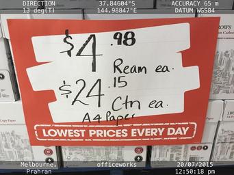 Do you not agree that an additional selling point that simply cost space on the price tag, ink and labour costs would have a significant improvement in product sales throughout all Officeworks in Australia? When profits are maxed, so would your salary increments, bonuses, share prices, job security and chances of promotion.