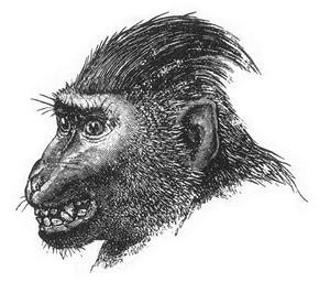 Keywords: Expression of the Emotions Figure 17.png Figure 17 from Charles Darwin's The Expression of the Emotions in Man and Animals Caption reads FIG 17 The same when pleased by being caressed See figure 16 for by the same author for context Note that the species is now known as Macaca nigra formerly Cynopithecus niger Scanned from 1965 version with foreword by Konrad Lorenz published by University of Chicago Press Published in 1872 Mr Wolf Drawings of monkeys Macaca nigra Joy The Expression of the Emotions in Man and Animals Drawings of primates PD-old Macaca heads