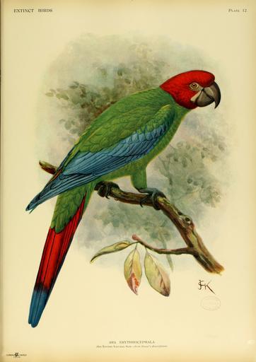 | Keywords: Extinctbirds1907 P12 Ara erythrocephala0305.png en The Jamaican Green-and-yellow Macaw Ara erythrocephala may have been a species of parrot in the Psittacidae family that was endemic to Jamaica but its existence is hypothetical es El Guacamayo Jamaicano Verdiamarillo Ara erythrocephala era una especie de guacamayo endémico de la isla de Jamaica Extinct birds an attempt to unite in one volume a short account of those birds which have become extinct in historical times that is within the last six or seven hundred years to which are added a few which still exist but are on the verge of extinction By Lionel Walter Rothschild 2nd Baron Rothschild 8 February 1868 “ 27 August 1937 http //www archive org/details/extinctbirdsatte00roth Creator John Gerrard Keulemans 1907 Not in copyright Public Domain Original PD-old-100 Extinct Birds Rothschild book 12 John Gerrard Keulemans Ara erythrocephala |