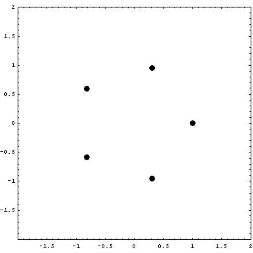 Keywords: Extrema complex x hoch 5.jpg zeros of the function <math> z 5-1 </math> in the complex plane made with mathematica own work 2007-08-31 Jan Homann public domain Complex polynomial maps Created with Mathematica