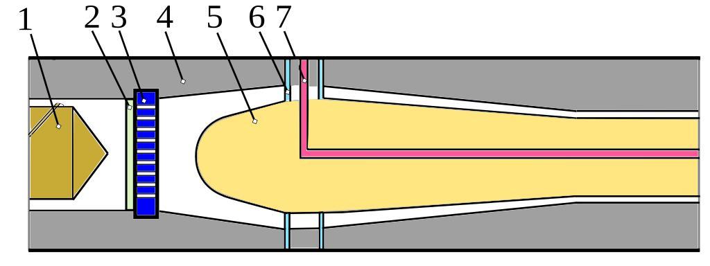Keywords: Extruder for tubes.svg en Extruder for tubes 1 screw 2 screen 4 barrel 5 core 6 bracket 7 air inlet hu Csőszerű termék extrudálása 1 csiga 2 szűrő 3 törőlap 4 henger 5 mag-etetőgarat 6 kereszttartó 7 levegőcsatorna own kifoc 05/01/2010 Rubber industry Manufacturing technology Extrusion Diagrams labelled with numbers only SVG manufacturing |