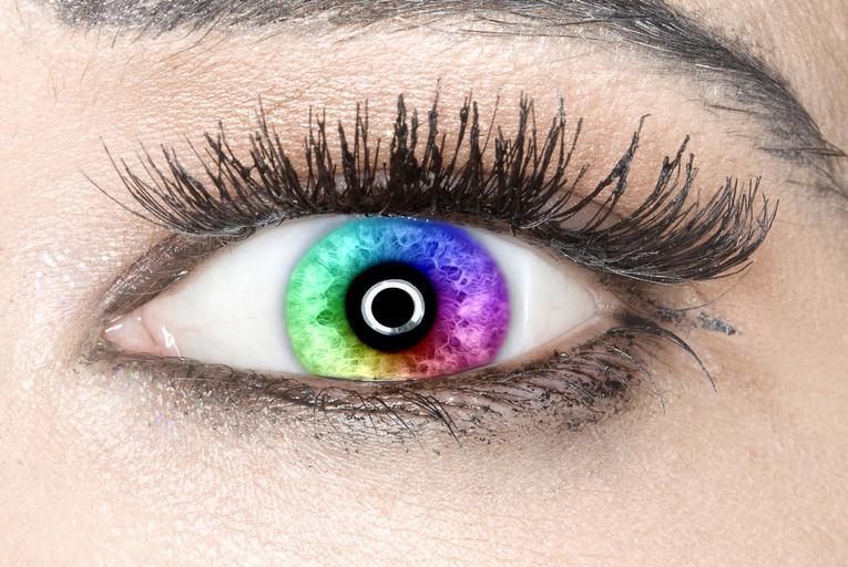 Keywords: eye iris rainbow colors beautiful close-up eyebrows eyelashes female skin woman young girl make-up