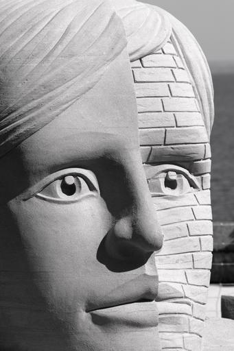 Keywords: eye nose mouth face woman two faces sand sculpture