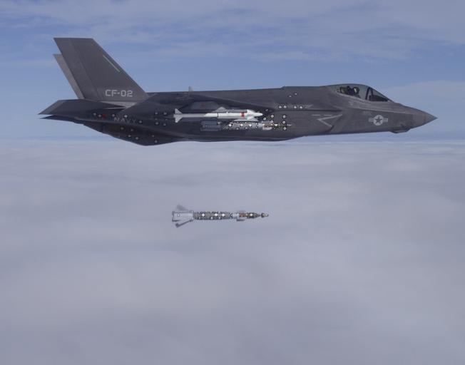 | Keywords: F-35 external weapons testing makes history, quadruples effectiveness and test efficiency 150923-D-AW822-554.jpg en Sept 23 marked the first time the F-35 Lightning II program conducted an external store weapons separation test The Pax River ITF test team released four GBU-12 Laser Guided Bomb inert test assets from the F-35C external wing weapon pylons of aircraft CF-02 during flight 394 The team released the weapons individually during four test runs on a single flight over the Atlantic Test Ranges demonstrating their test efficiency by accomplishing four flights worth of test work in a single flight <br>Unit F-35 Lighting II Pax River ITF 2015-09-23 Lockheed Martin photo by Andy Wolfe https //www dvidshub net/image/2210301/f-35-external-weapons-testing-makes-history-quadruples-effectiveness-and-test-efficiency 150923-D-AW822-554 2015 10 03 19 15 NAVAL AIR STATION PATUXENT RIVER MD US PD-USNavy Naval Air Station Patuxent River Images from DoD uploaded by Fæ Photographs by Andy Wolfe Taken with Red Epic |