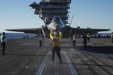 | Keywords: F-35C Joint Strike Fighter conducts its first launch from an aircraft carrier 141104-N-IP743-215.jpg en The F-35C Lightning II carrier variant Joint Strike Fighter completes its first carrier launch from the flight deck of the aircraft carrier USS Nimitz CVN 68 off the coast of San Diego Nov 4 2014 The F-35 Lightning II Pax River Integrated Test Force is conducting initial at-sea trials aboard Nimitz U S Navy photo by Mass Communication Specialist 1st Class Brett Cote/Released 2014-11-04 Petty Officer 1st Class Brett Cote https //www dvidshub net/image/1648251 141104-N-IP743-215 2014-11-07 16 23 USS NIMITZ CA US PD-USGov-Military-Navy F-35C Lightning II aircraft carrier launches USS Nimitz CVN-68 Images from DoD uploaded by Fæ |
