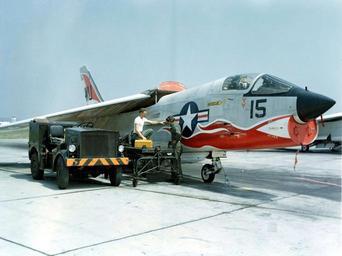 | Keywords: F-8 Crusader of VMF-334 on the ground.jpeg  A U S Marine Corps Vought F-8C Crusader from Marine Fighter Squadron 334 VMF-334 Falcons http //collections naval aviation museum/emuwebdoncoms/pages/doncoms/AdvQuery php U S Navy National Museum of Naval Aviation photo No http //collections naval aviation museum/emuwebdoncoms/pages/doncoms/Display php irn 46624 QueryPage 2Femuwebdoncoms 2Fpages 2Fdoncoms 2FAdvQuery php 1996 253 7357 032 s 1960 U S Navy PD-USGov-Military-Navy F-8C Crusader Marine Fighter Attack Squadron 334 |
