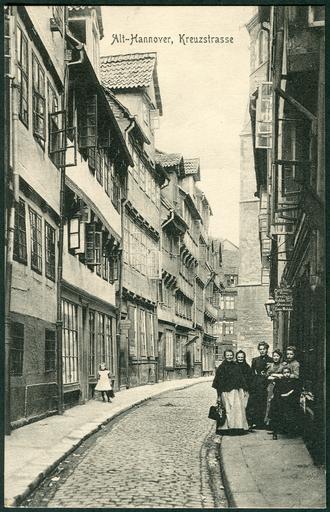 Keywords: F. Astholz jun. AK 0901 Alt-Hannover, Kreuzstraße, Bildseite Blick Richtung Kreuzkirche, Frauen, Kinder, Fachwerkhäuser, Kreuzklappe.jpg Blick um 1900 durch die Kreuzstraße in Hannover in Richtung Kreuzkirche zwischen den Fachwerkhäusern steht links ein Mädchen mit Schürze Auf der rechten Straßenseite ist unter dem Schild der Kolonialwarenhandlung Kohlen Torf u Gemüse von Frank Westphal eine Gruppe von fünf Frauen mit einem Mädchen zu sehen Dieses Dokument wurde freundlicherweise von Heralde Schmitt-Ulms zum Scannen geliehen um es als Digitalisat bei Commons nachhaltig allen Menschen zu Bildungszwecken zur Verfügung zu stellen Scan vom Original Bernd Schwabe in Hannover ~ 1900 Friedrich Astholz junior PD-old Documents by Heralde Schmitt-Ulms Friedrich Astholz junior Demolished buildings in Hannover Kreuzstraße Hannover Children in Hannover |