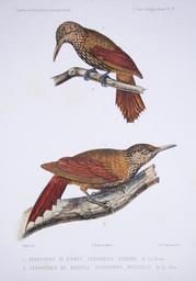 Keywords: F de Castelnau-oiseauxPl14.jpg 1 below Dendrornis kienerii <small>de La Fresn </small> Dendroplex kienerii <small> Des Murs 1855 </small><br/> 2 above Dendrornis weddellii <small>de La Fresn </small> Xiphorhynchus ocellatus weddellii <small> Des Murs 1855 </small><br/> en Ocellated Woodcreeper above - Zimmer's Woodcreeper below fr Grimpar ocellé Dendrornis de Weddell dessus - Grimpar de Zimmer Dendrornis de Kiener dessous fr Expédition dans les parties centrales de l'Amérique du Sud de Rio de Janeiro à Lima et de Lima au Para sous la direction du Comte Francis de Castelnau 7<sup>ème</sup> partie tôme I 3 Oiseaux Planche 14 Exemplaire de la bibliothèque patrimoniale de Gray France Scanned by Jeffdelonge 1855 Creator Francis de Laporte de Castelnau Marc A P Œillet Des Murs text PD-old-100 Dendroplex kienerii Castelnau jpg Xiphorhynchus ocellatus Castelnau jpg Francis de Castelnau's expedition Birds of South America Dendroplex kienerii Xiphorhynchus ocellatus |