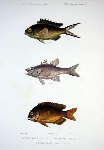 MAKE A MEME View Large Image F de Castelnau-poissonsPl03.jpg From top to bottom <br/> Heliasis marginatus Chromis multilineata<br/> Apogon americanum Apogon americanus<br/> Pomacanthus variabilis Pomacentrus variabilis Syn Stegastes variabilis<br/> fr Expédition dans ...
