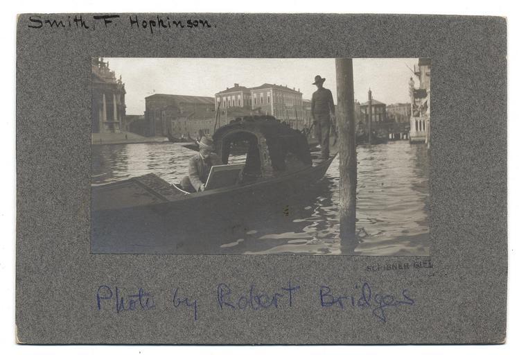 Keywords: smithsonian institution smithsonianinstitution artist author engineer venice góndola lienzo artista venecia vintage sepia canal venedig venetian boat water river slide gondola men archives of american art archivesofamericanart outdoor Description: Smith, in Venice, seated in gondola looking at a canvas. Identification on front (handwritten): Smith, F. Hopkinson; Photo by Robert Bridges. Smith, Francis Hopkinson, 1838-1915 Creator/Photographer: Robert Bridges Birth Date: 1858 Death Date: 1941 Medium: Black and white photographic print Dimensions: 7 cm x 11 cm Date: c. 1910 Persistent URL: www.aaa.si.edu/collections/images/detail/f-hopkinson-smit... Repository: Archives of American Art Collection: Charles Scribner's Sons Art Reference Department Records, c. 1865-1957 Accession number: aaa_charscrs_4358 Description: Smith, in Venice, seated in gondola looking at a canvas. Identification on front (handwritten): Smith, F. Hopkinson; Photo by Robert Bridges. Smith, Francis Hopkinson, 1838-1915 Creator/Photographer: Robert Bridges Birth Date: 1858 Death Date: 1941 Medium: Black and white photographic print Dimensions: 7 cm x 11 cm Date: c. 1910 Persistent URL: www.aaa.si.edu/collections/images/detail/f-hopkinson-smit... Repository: Archives of American Art Collection: Charles Scribner's Sons Art Reference Department Records, c. 1865-1957 Accession number: aaa_charscrs_4358 |