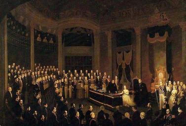 Keywords: F. Tirone - Juramento Constitucional.jpg Juramento Constitucional da Princesa Isabel Princess Isabel's Constitutional Oath - 1861 1862 Oil on canvas cm 166 5 231 5 Museu Histórico Nacional Rio de Janeiro Brazil A obra retrata a Princesa Isabel então com 14 anos prestando juramente à Constituição do Império em 29 de julho de 1860 dia do seu aniversário http //www museuhistoriconacional com br/images/galeria26/mh-g26a027 htm PD-Art Other versions ImageNote 1 392 332 8 8 800 543 2 Duque de Caxias ImageNoteEnd 1 ImageNote 2 533 378 8 8 800 543 2 Princesa Isabel do Brasil ImageNoteEnd 2 ImageNote 3 75 350 8 8 800 543 2 Ministro Euzébio de Queiroz ImageNoteEnd 3 F Tirone History of Brazil 1840-1889 Pedro II Reign Paintings in the Museu Histórico Nacional Isabel Princess Imperial of Brazil Luís Alves de Lima e Silva Brazil in history paintings 1860s paintings from Brazil 1861 |