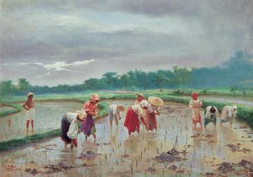Keywords: Fabián de la Rosa - In the Rice Field (1919).jpg Fabián de la Rosa Fabián de la Rosa 1869-1937 1919 oil canvas cm 55 3 80 accession number object history credit line exhibition history F de la Rosa Manila 1919 ~ lower left signature / place / date christies online 5390975 2826 1570 Hong Kong 29 November 2010 PD-old-auto-1923 1937 DEFAULTSORT Rosa Fabian de la; Landscape 1919; Christie's 2010 Fabian de la Rosa 1910s landscape paintings 20th-century genre paintings Images from Christie's