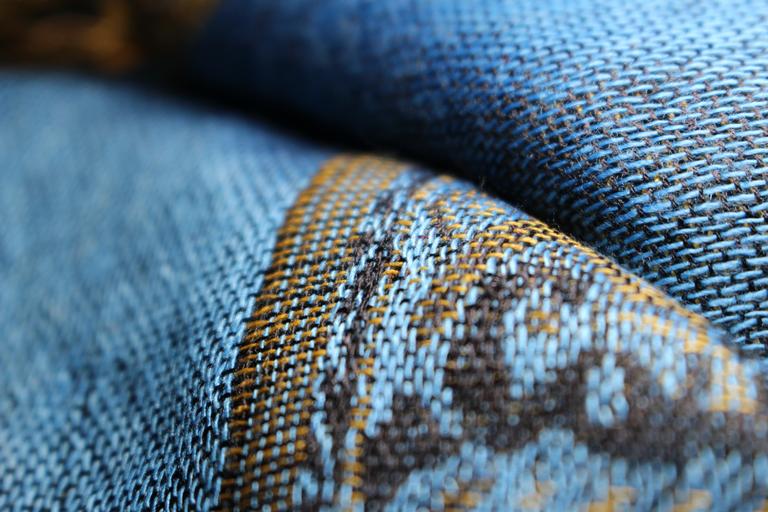 Keywords: fabric weave textile pattern thread substances produce craft blue gold grey