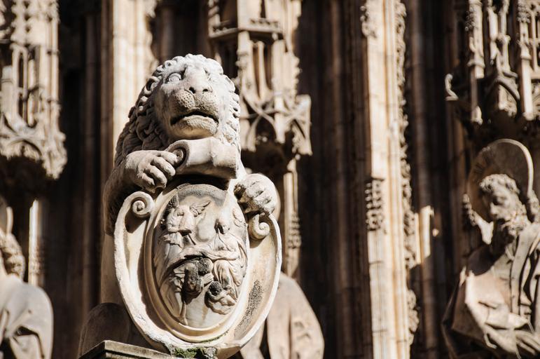 Keywords: facade church architecture church facade building cathedral toledo heraldic lion