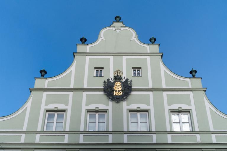Keywords: facade gable building architecture historically old town houses facades rose shield brewery kronenbräu donauwörth bavaria