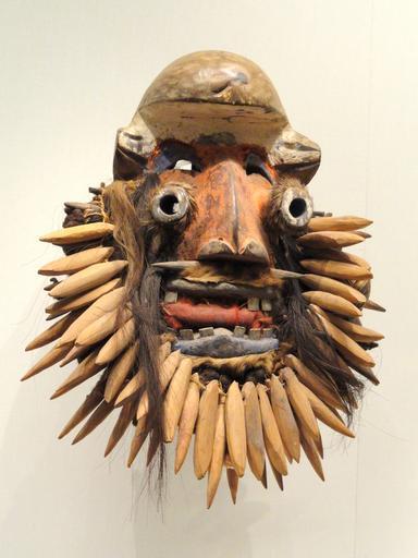 | Keywords: Face Mask, early 1900s, Guinea Coast, Ivory Coast, or Liberia, We people, wood, metal, cloth, furs - Cleveland Museum of Art - DSC08712.JPG en Exhibit in the Cleveland Museum of Art Cleveland Ohio USA Photography was permitted in the museum without restriction This artwork is old enough so that it is in the public domain Daderot 2012-09-07 14 40 11 Daderot cc0 cc0 African art in the Cleveland Museum of Art Wee people Fur masks | ||||