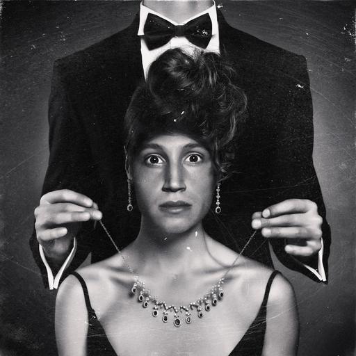 Keywords: face photomontage jewelry woman pearls fashion ms ornament beauty ornaments style the town hall bracelet mood black and white hairstyle kok mucha suit dress
