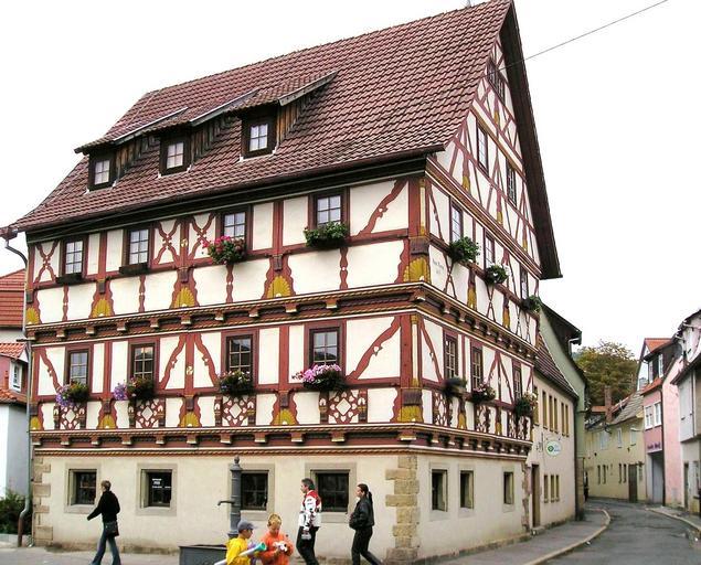 Keywords: Fachwerk-Meiningen.jpg Typisches Henneberg-Fränkisches Fachwerkhaus in Meiningen reich verziert mit Andreaskreuzen und Sonnenscheiben erbaut um 1600 own 2004 Kramer96 Facades in Germany Meiningen Building ornaments in Germany Meiningen Fan-shaped rosettes ornament Timber framing in Meiningen |