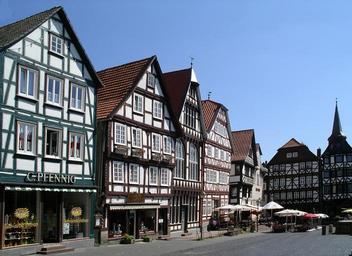 Keywords: fachwerkhäuser old town marketplace bad wildungen choir tour parasols sky blue steeple downtown historically visitors stadtmitte