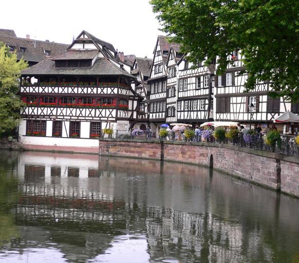 Keywords: fachwerkhäuser river ill truss strasbourg france channel mirroring water wall