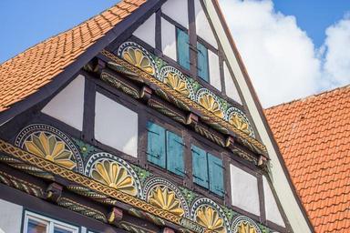 Keywords: fachwerkhaus lemgo facade truss architecture building old town home window wood bar shutters hauswand housewife timber framed building historically mural painted decorated
