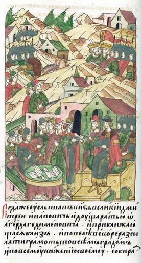 MAKE A MEME View Large Image Facial Chronicle - b.08, p.382 - Dmitry Donskoy before war with Algirdas.jpg ru Великий князь  осковский Дмит ий Иванович  ассылает г амоты по  усским го одам для ...