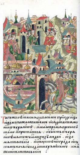 | Keywords: Facial Chronicle - b.08, p.168 - Death of Vasily Ivanovich of Bryansk.jpg ЛИЦЕВОЙ ЛЕТОПИС ЫЙ СВОД В том же году князь Василий п ишел из О ды с пожалованием и сел на княжение в Б янске и малое в емя там п обыв п еставился И был в Б янске мятеж от лихих людей и смута великая опустели го ода и завладел Б янском великий князь Литовский http //www akteon-elib ru/LITsIeVOI-LIeTOPISNYI-SVOD-Russkaya-letopisnaya-istoriya-Kniga-8/ VI century 16 anonymous PD-Old Facial Chronicle v 6 - Ostermanovskiy 1-y tom 1254-1378 Death in medieval miniatures Russia Files uploaded by Shakko from various sources 1356 in Russia Princes of Bryansk |