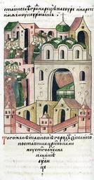 | Keywords: Facial Chronicle - b.08, p.464 - Spas na Ilyine.jpg ЛИЦЕВОЙ ЛЕТОПИС ЫЙ СВОД В том же году в Великом овго оде пост оили каменную це ковь святого Спаса на Ильине улице http //www akteon-elib ru/LITsIeVOI-LIeTOPISNYI-SVOD-Russkaya-letopisnaya-istoriya-Kniga-8/ VI century 16 anonymous PD-Old Facial Chronicle v 6 - Ostermanovskiy 1-y tom 1254-1378 Files uploaded by Shakko from various sources Church of the Transfiguration on Ilina Street Veliky Novgorod 1374 in Russia History of Velikiy Novgorod |