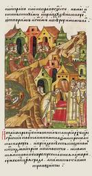| Keywords: Facial Chronicle - b.09, p.275 - Patriarch Nilus and Pimen.jpg ЛИЦЕВОЙ ЛЕТОПИС ЫЙ СВОД И тогда п еосвященный ил пат иа х Ца ьг адский поставил Пимена в мит ополиты всея Руси Дошла об этом весть к великому князю Дмит ию Ивановичу что « итяй твой вско е п еставился вблизи Ца ьг ада а мит ополитом стал Пимен» http //sterligoff ru/ century 16 anonymous PD-Old Facial Chronicle v 6 - Ostermanovskiy 1-y tom 1254-1378 Files uploaded by Shakko from various sources 1379 in Russia Pimen Metropolitan of Moscow Mityay |