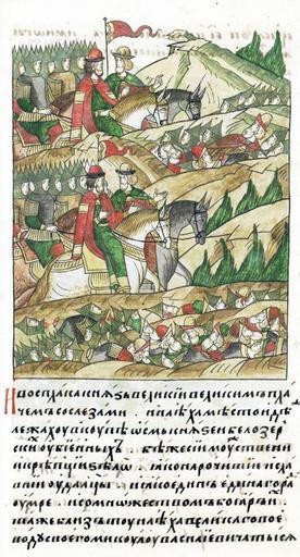 | Keywords: Facial Chronicle - b.09, p.525 - Dmitry Donskoy and Vladimir the Bold.jpg ru Лицевой летописный свод И восплакал князь великий великим плачем со слезами и п иехал на место где лежали вместе восемь князей белозе ских убитых Были же сии мужественны и к епки очень и известные и славные удальцы; и один за д угого уме ли и со множеством боя их Также близко от тех подъехал к великому воеводе своему икуле Васильевичу тысяцкому и тут 15 князей с ним и многое множество боя и воевод ме твых лежало http //www akteon-elib ru/LITsIeVOI-LIeTOPISNYI-SVOD-Russkaya-letopisnaya-istoriya-Kniga-9/ 464 century 16 anonymous PD-Old Facial Chronicle v 7 - Ostermanovskiy 2-y tom 1378-1424 Files uploaded by Shakko from various sources Battle of Kulikovo in manuscripts Dmitry Donskoy in manuscripts Vladimir Andreevich the Bold in miniature Princes of Belozersk House of Velyaminov |