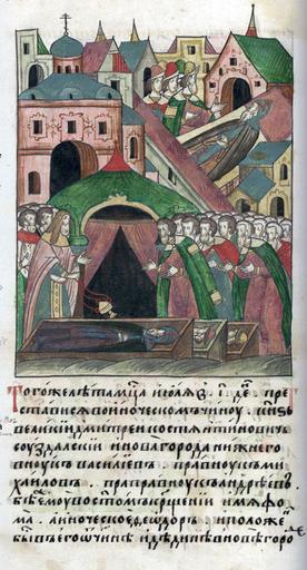 | Keywords: Facial Chronicle - b.10, p.124 - Death of Dmitriy Konstantinovich of Suzdal.jpg ЛИЦЕВОЙ ЛЕТОПИС ЫЙ СВОД Тем же летом месяца июля в 10-й день п еставился в иноческом чину князь великий Дмит ий Константинович Суздальский и овго ода ижнего внук Васильев п авнук ихайлов п ап авнук Анд еев; было же ему во святом к ещении имя Фома а иноческое Феодо И положен был в его отчине и дедине в овго оде http //www akteon-elib ru/LITsIeVOI-LIeTOPISNYI-SVOD-Russkaya-letopisnaya-istoriya-Kniga-10/ 14 century 16 anonymous PD-Old Facial Chronicle v 7 - Ostermanovskiy 2-y tom 1378-1424 Death in medieval miniatures Russia Files uploaded by Shakko from various sources 1383 in Russia Dmitriy Konstantinovich of Suzdal |