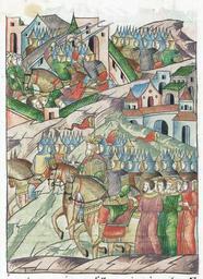 | Keywords: Facial Chronicle - b.10, p.083 - Tokhtamysh at Kolomna.jpg ЛИЦЕВОЙ ЛЕТОПИС ЫЙ СВОД И так че ез несколько дней пошел вспять от го ода осквы со многим полоном и бесчисленным богатством а пе ед собой послал ать к Коломне Они же пойдя го од Коломну взяли http //www akteon-elib ru/LITsIeVOI-LIeTOPISNYI-SVOD-Russkaya-letopisnaya-istoriya-Kniga-10/ 14 century 16 anonymous PD-Old Facial Chronicle v 7 - Ostermanovskiy 2-y tom 1378-1424 Files uploaded by Shakko from various sources 1382 in Russia Tokhtamysh Kolomna |