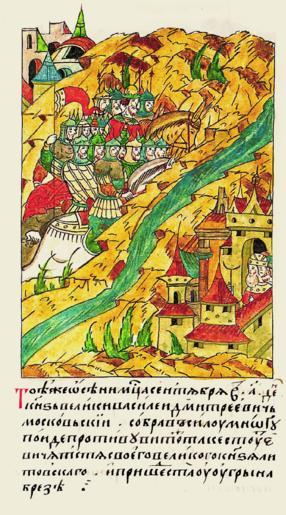 | Keywords: Facial Chronicle - b.12, p.171.gif В ту же осень месяца сентяб я в 1 день великий князь Василий Дми- т иевич осковский соб ав большое во- йско выступил п отив своего тестя велико- го князя Литовского Витовта Кейстутовича и встал на бе егу Уг ы http //www runivers ru/bookreader/book480190/ page/7/mode/1up century 16 anonymous PD-Old Files uploaded by Shakko from various sources Facial Chronicle v 7 - Ostermanovskiy 2-y tom 1378-1424 1408 in Russia Vasily I of Moscow in miniature | ||||
