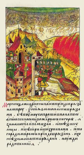 Keywords: Facial Chronicle - b.14, p. 014.gif устафа же ца евич п и- шел в Рязань с ми ом соби аясь зимовать в Рязани; так как ему было т удно на Поле а к тому же осенью все Поле в пожа е вы- го ело а зима была люта и очень су овая много снега выпало начались сильные вет ы и вих и И по- тому ца евич с ми- ом п ишел в Рязань и хотел пе езимовать там из-за к айней не- обходимости http //www runivers ru/bookreader/book480451/ page/25/mode/1up century 16 anonymous PD-Old Facial Chronicle v 4 - Golytsinskiy tom 1114-1247; 1425-1472 Files uploaded by Shakko from various sources