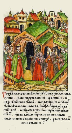 | Keywords: Facial Chronicle - b.16, p. 456.gif Тогда же на оскве мать его великая княгиня и мит ополит Ге онтий и а хиепи- скоп Вассиан и т о- ицкий игумен Паисий молили великого князя о б атии его; князь же великий п инял моление их и повелел мате и своей вели- кой княгине послать за ними обещал их жаловать http //www runivers ru/bookreader/book481263/ page/5/mode/1up 16th-century anonymous PD-Old Facial Chronicle v 8 - Shumilovskiy tom 1425; 1478-1533 Files uploaded by Shakko from various sources Ivan III of Russia in miniature Maria Yaroslavna of Borovsk in miniature |