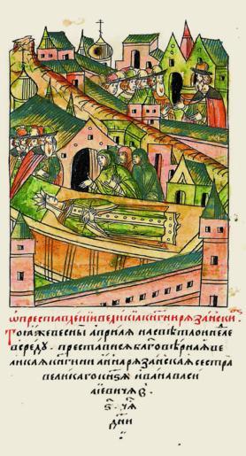 | Keywords: Facial Chronicle - b.17, p. 455 - Anna Vasilyevna's death.gif О кончине великой княгини Рязанской В ту же весну в ап еле на Светлой неделе в с еду скончалась благове ная великая княгиня Анна Рязан- ская сест а великого князя Ивана Василье- вича в 6 часу дня http //sterligoff ru/books/Rus_Kniga 2018 pdf 16th-century anonymous PD-Old Facial Chronicle v 8 - Shumilovskiy tom 1425; 1478-1533 Death in medieval miniatures Russia Files uploaded by Shakko from various sources Anna Vasilyevna 1501 in Russia |