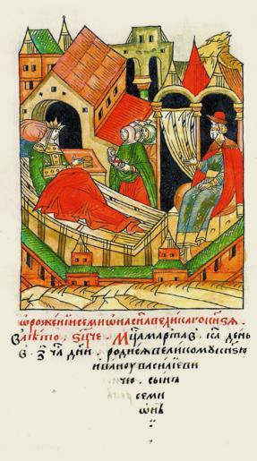 View Original:Facial_Chronicle_-_b.17,_p._062_-_Birth_of_Simeon_Ivanovich_of_Kaluga.gif (845x1517)