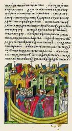 Keywords: Facial Chronicle - b.19, p. 031.gif великой княгиней Еленой и со своими вельможами Да как сам был к Богу ве ою и любовью влеком такую ему и помощ- ницу да овал Бог кото ая п емуд остью и азумом во всем следовала самоде - жавному богомуд ому своему суп угу; всегда на Бога упование воз- лагая ве ою утве ж- даясь и с надеждою адуясь; ибо известно что ве а побеждает а надежда не по- с амит Он всегда ст емился об ащать молитвы к Богу ибо у него было ог омное желание посадить на п естоле своем в на- следие оду своему плод ч ева своего http //www runivers ru/bookreader/book481461/ page/31/mode/1up 16th-century anonymous PD-old-100-1923 Facial Chronicle v 8 - Shumilovskiy tom 1425; 1478-1533 Files uploaded by Shakko from various sources Elena Glinskaya Vasily III of Russia in miniature