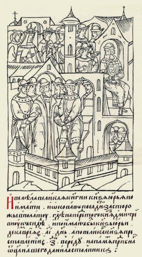 | Keywords: Facial Chronicle - b.19, p. 381 - Yuriy Ivanovich of Dmitrov arrested.gif Лицевой Летописный свод И велела великая княгиня князя Ю ия схватить и оковав посадить под ст ажей в палату где пе ед тем князь Дмит ий внук сидел И схвачен был князь Ю ий в декаб е в 11-й день а после кончи- ны великого князя на 7-й день в с еду на память п еподобного отца нашего Даниила Столпника http //www runivers ru/bookreader/book481461/ page/31/mode/1up 16th-century anonymous PD-Old Facial Chronicle v 10 - Tsarstvennaya kniga 1533-1553 Files uploaded by Shakko from various sources 1534 in Russia Yuriy Ivanovich of Dmitrov |